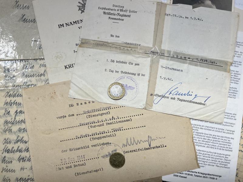 "Waffen-SS" citation grouping of "SS-Rottenführer" Heinrich Schaub who served within SS-Pz.Art.Rgt.1 "LSSAH" .