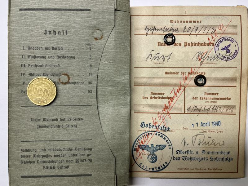 Wehrpass and "Reichsgau Wartheland" (I.D.) of Ernst Schmidt who served withinInf.Rgt.346 of the 217.Inf.Div.
