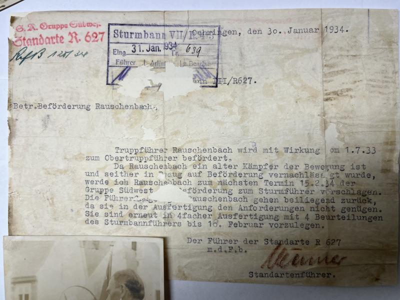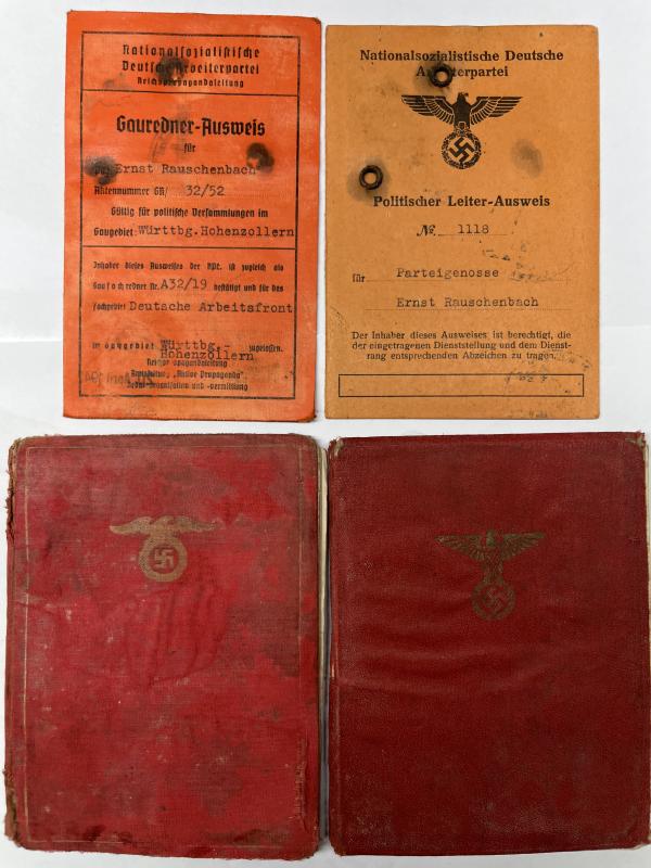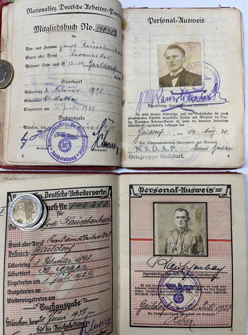 Rare N.S.D.A.P. membership grouping of "Obersturmführer" Ernst Rauschenbach who entered the N.S.D.A.P. on 1-7-1929 with membership nr.140283