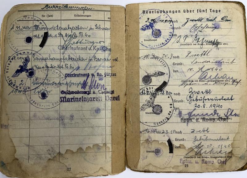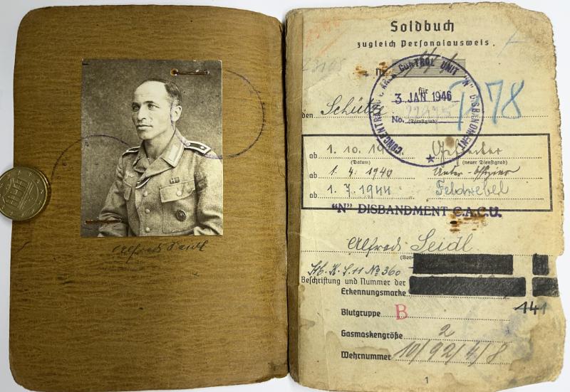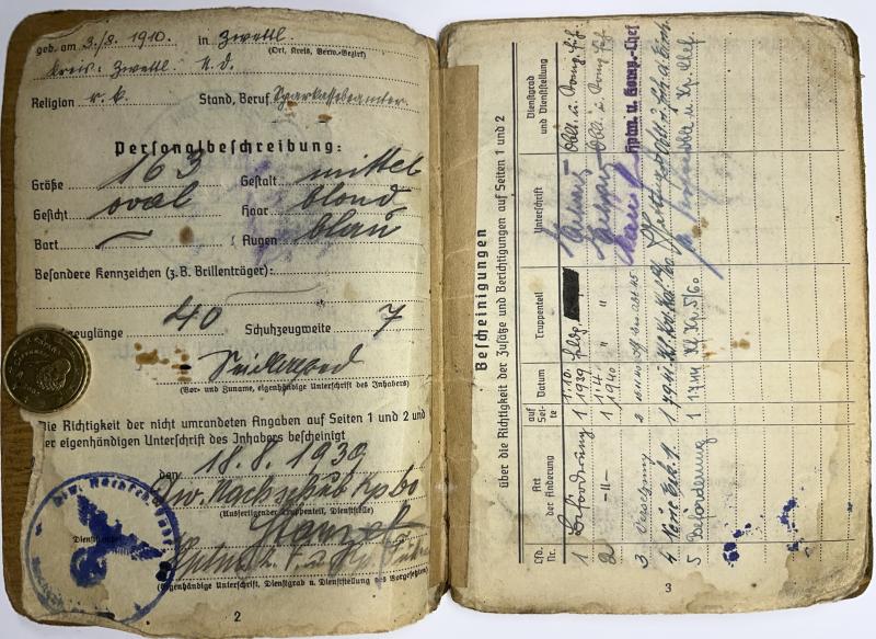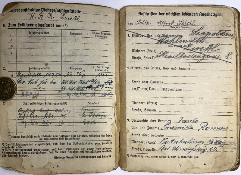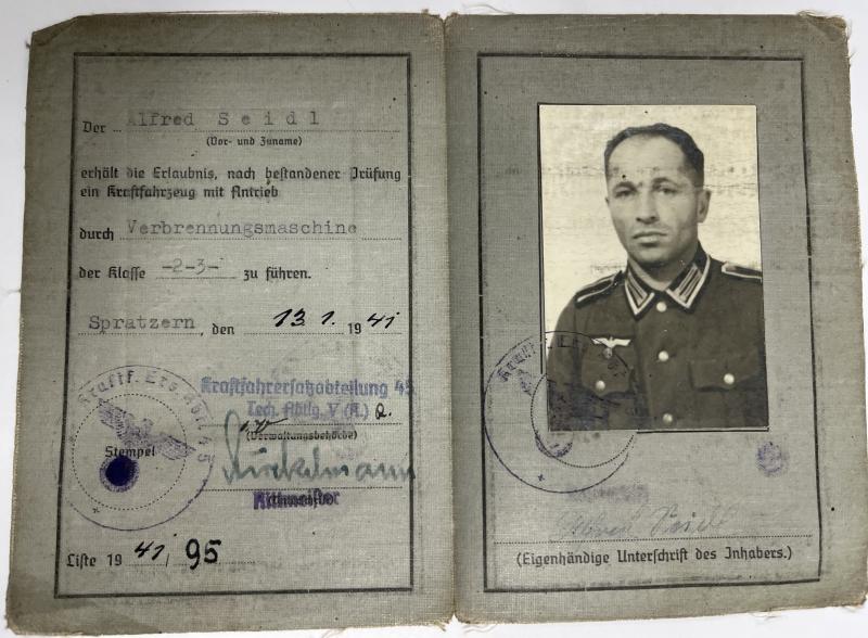 Soldbuch and drivers license of "Feldwebel" Alfred Seidl who served within several different "Nachschub" (ordnance) units within the 9.Pz.Div.