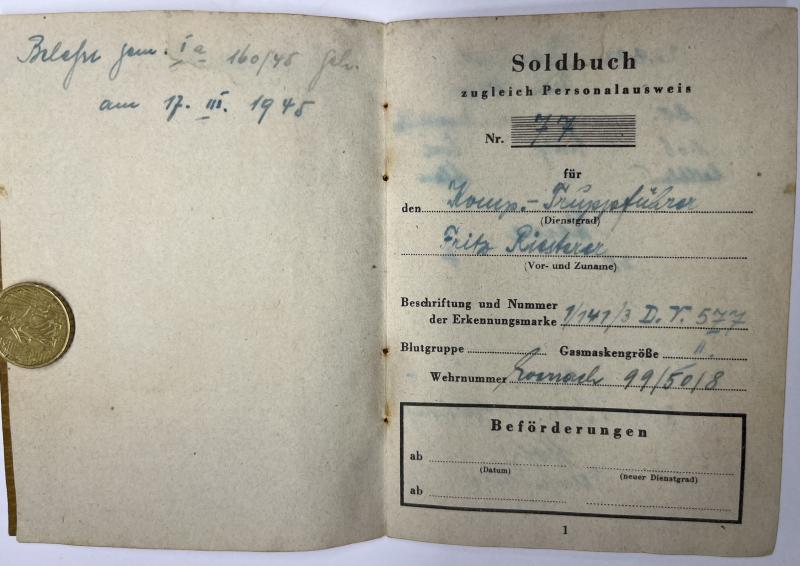Soldbuch - "Volkssturm" - Riesterer