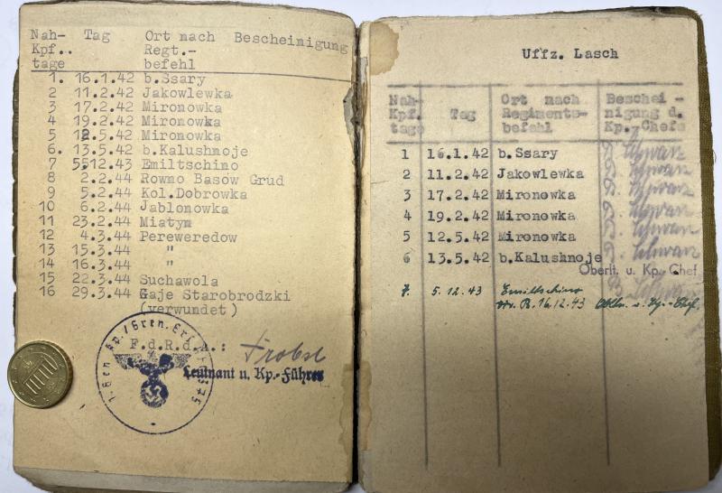 The "Nahkampfspange I Stufe" entry could be legit based on the fact that Lasch participated in 16 close combat days but looks a bit sloppy.