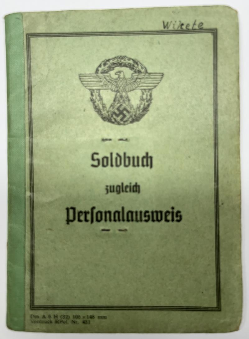 "Polizei" Soldbuch of "Unterwachtmeister der Polizei" Karl Wikete who started his service within Hilfspolizei Ergänzungs Batl.Serbien 527 and who finally ended up within Pol.Rgt.4