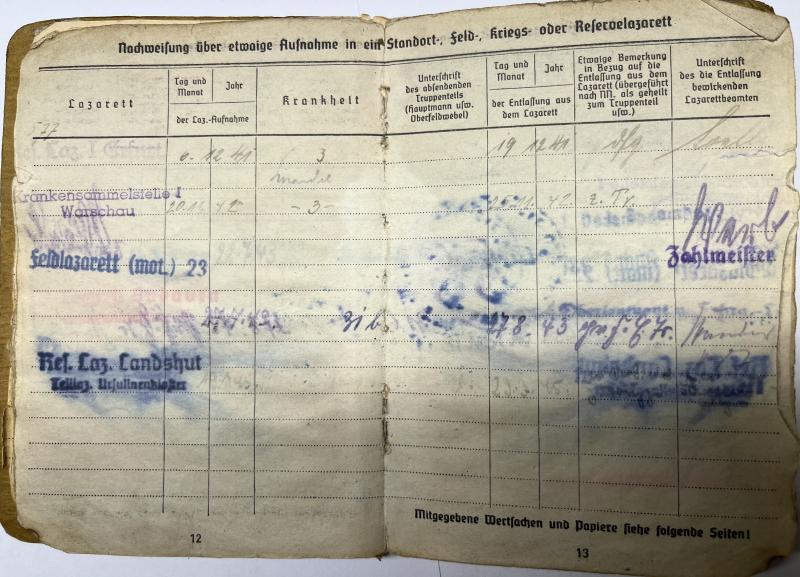 1) Soldbuch of Barthel which shows some fire damage and removed photo.