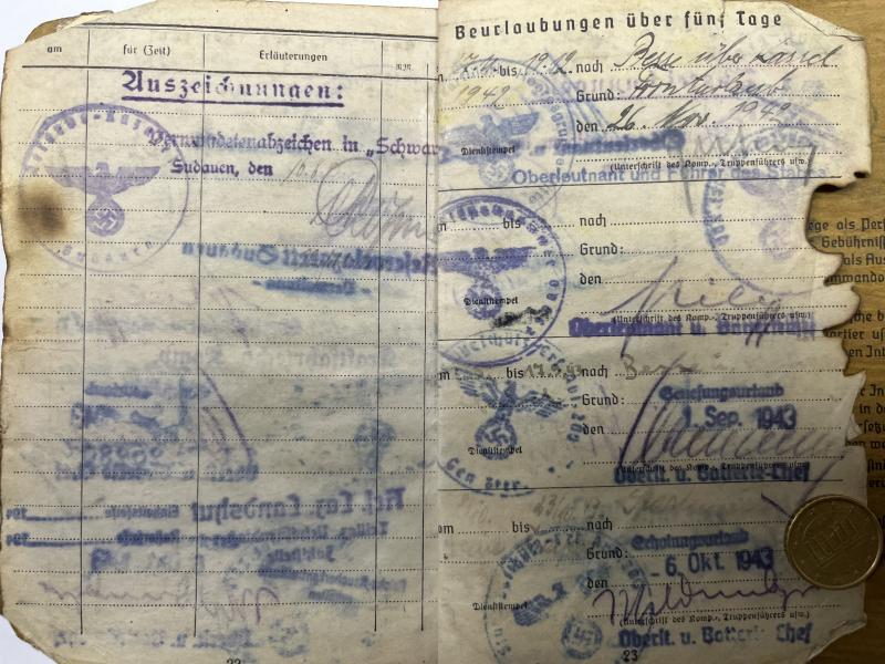 Soldbuch ,citation and photos of "Unteroffizier" Erich Barthel who served within Stug.Brig.600 and finally Stug.Brig.210.