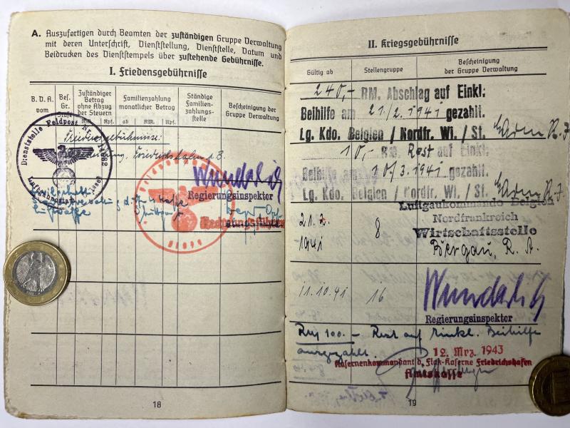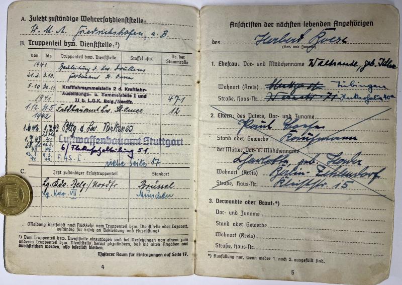 Soldbuch of "Regierungs Baürat a.K" Herbert Boese who served within diverse totally different units within the Luftwaffe.