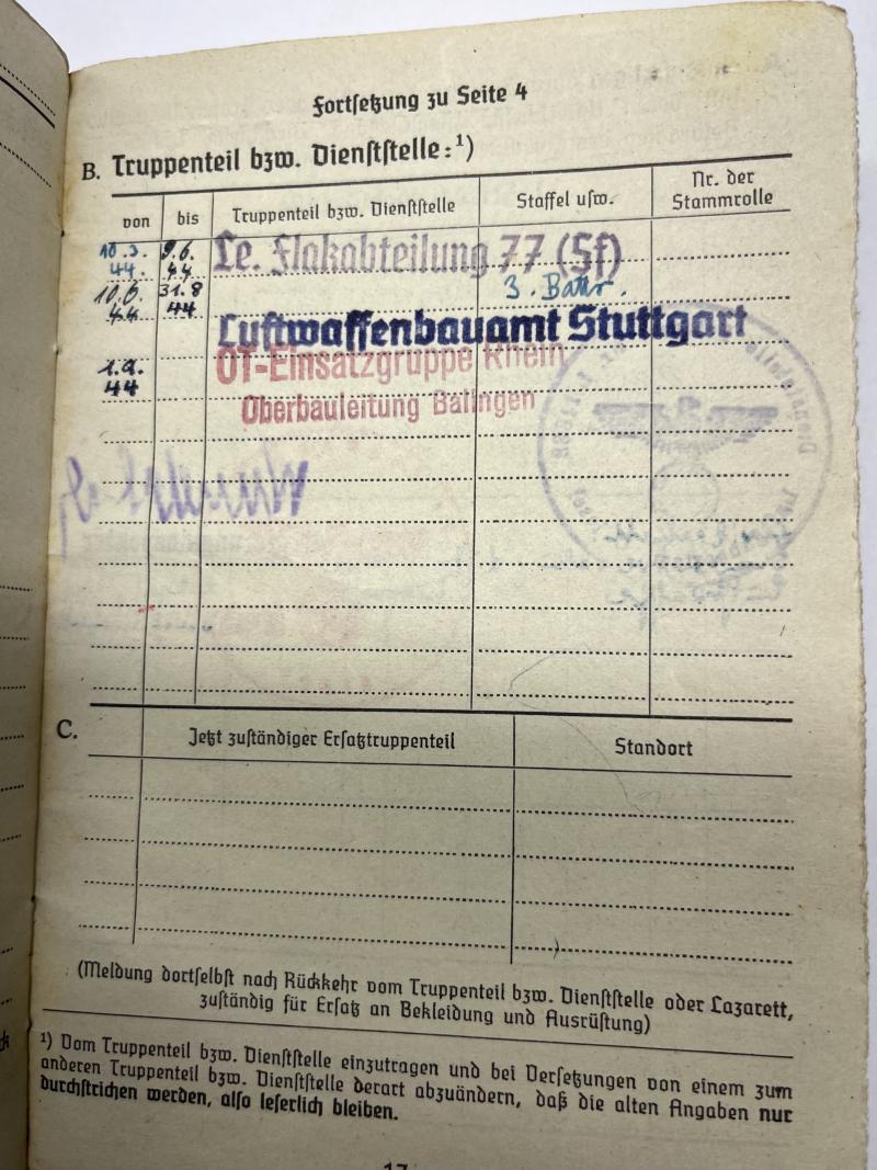 Soldbuch - Luftwaffe - O-T Einsatzgruppe Rhein - Boese