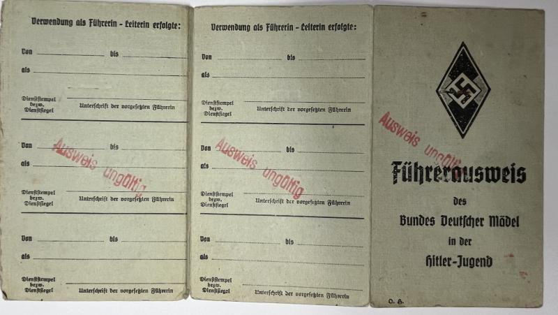 2) "Führerausweis des Bundes Deutscher Mädel in der H-J" of Kaschka who was promoted to "Bannmädelführerin"