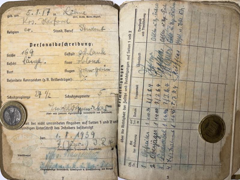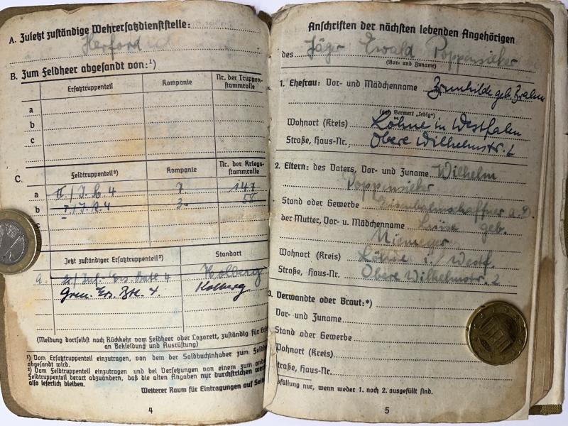 Soldbuch of late "Leutnant" Ewald Poppensieker who served within Inf.Rgt.4 of the 32.Inf.Div.