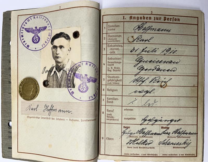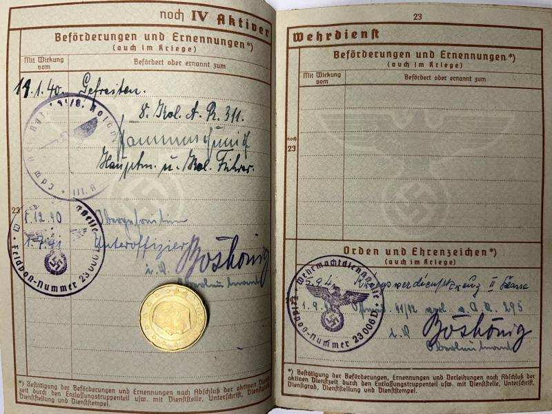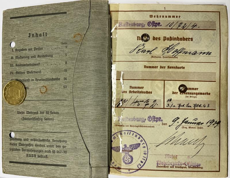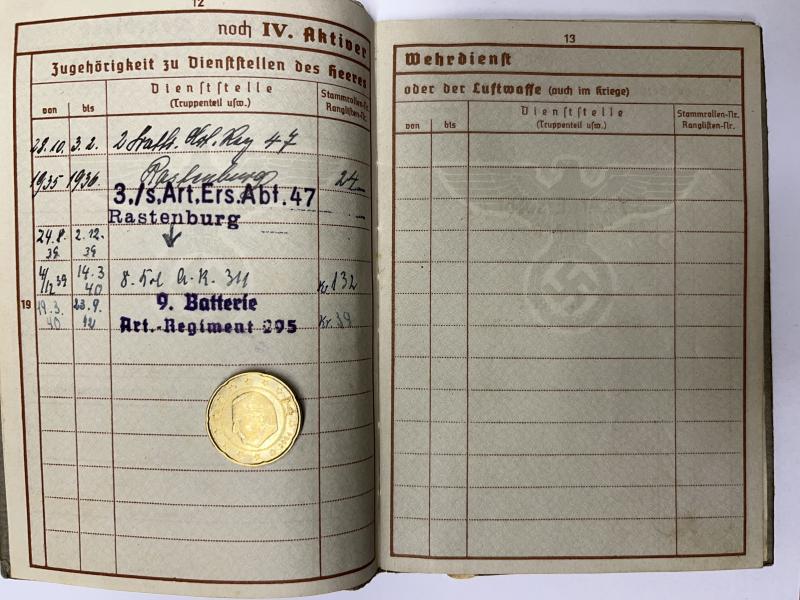 Wehrpass of "Unteroffizier" Karl Hoffmann who served within Art.Rgt.295 of the 295.Inf.Div.