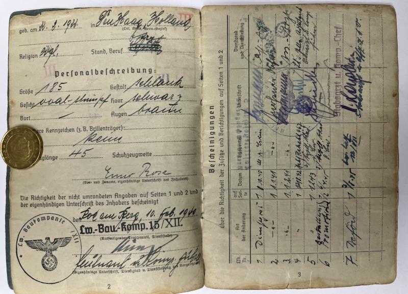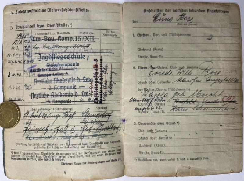 Soldbuch of "Assistent Arzt, Dr.Medicus" Enno Rose who served within totally different units within the Luftwaffe.