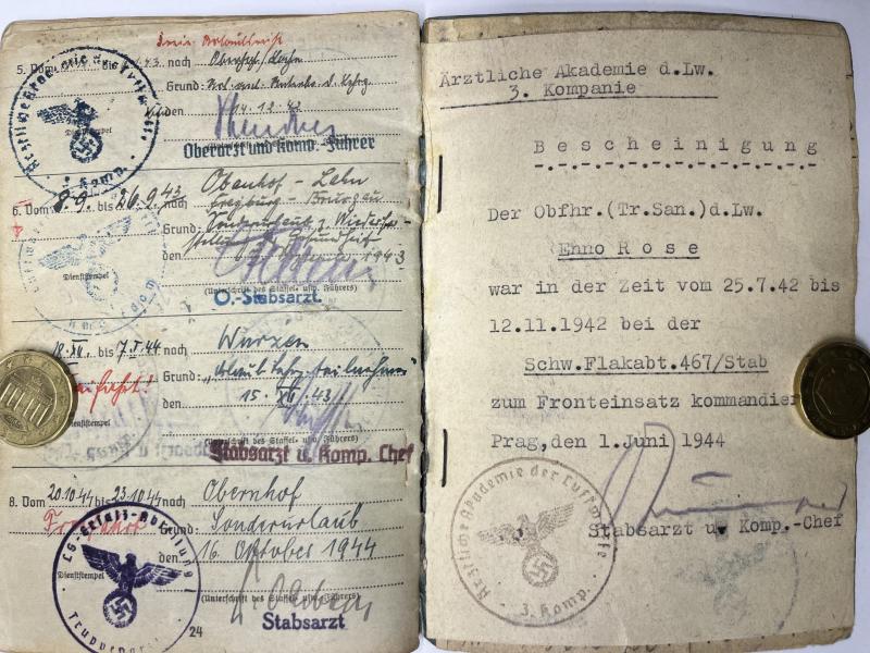 Soldbuch - Luftwaffe - Arztliche akademie der Luftwaffe - Rose