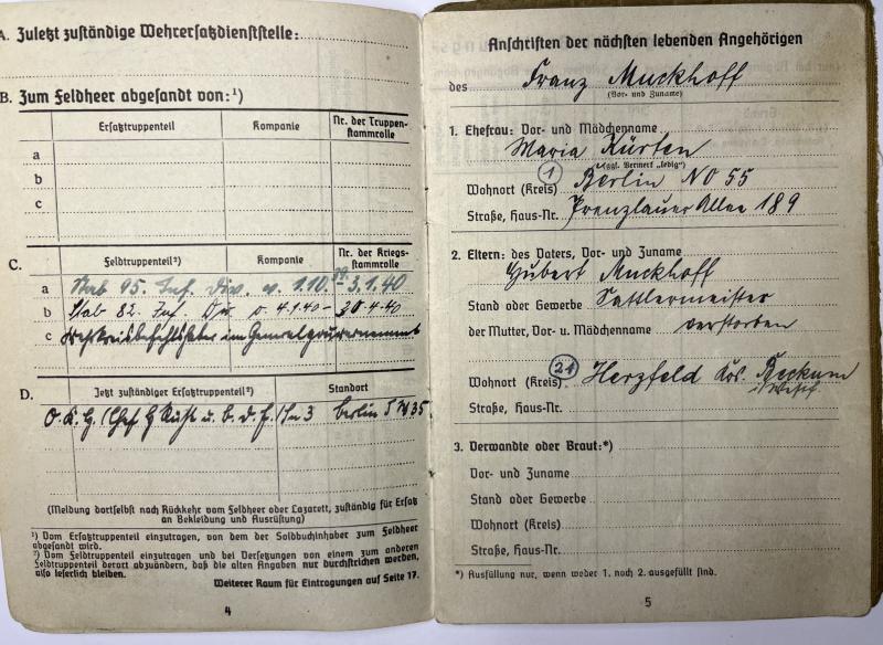 Soldbuch WH (Heer) - 95.Inf.Div./82.Inf.Div. - Muckhoff