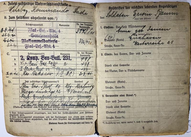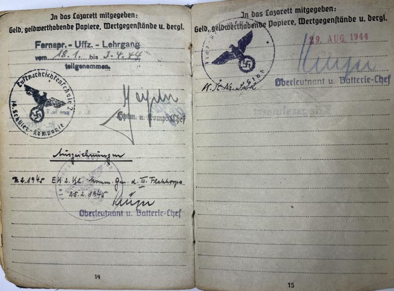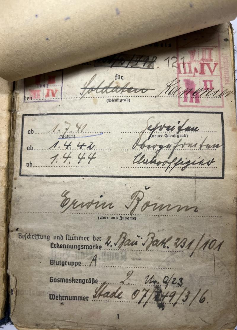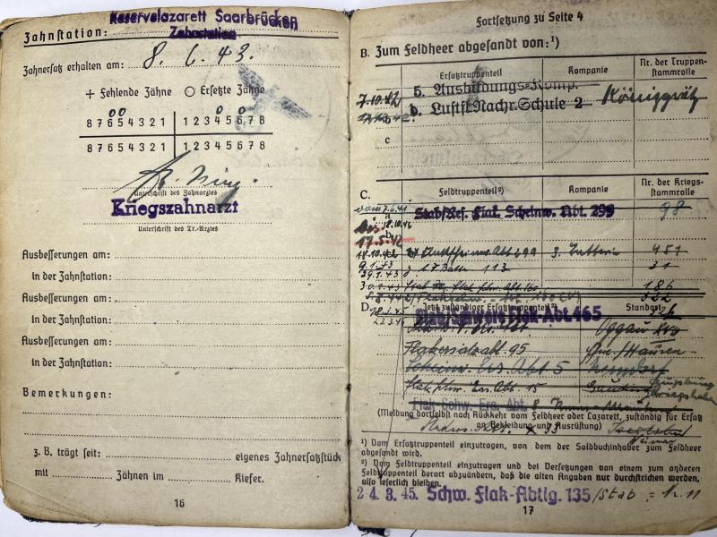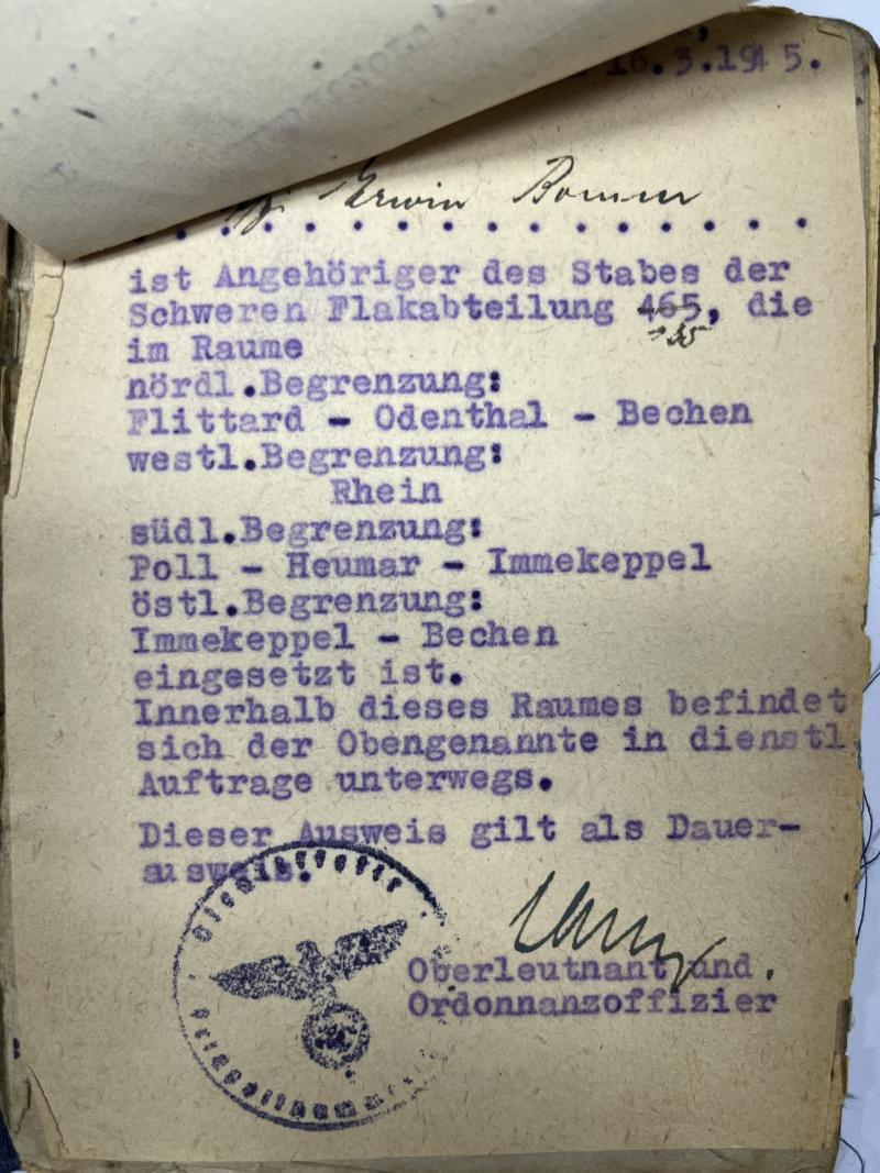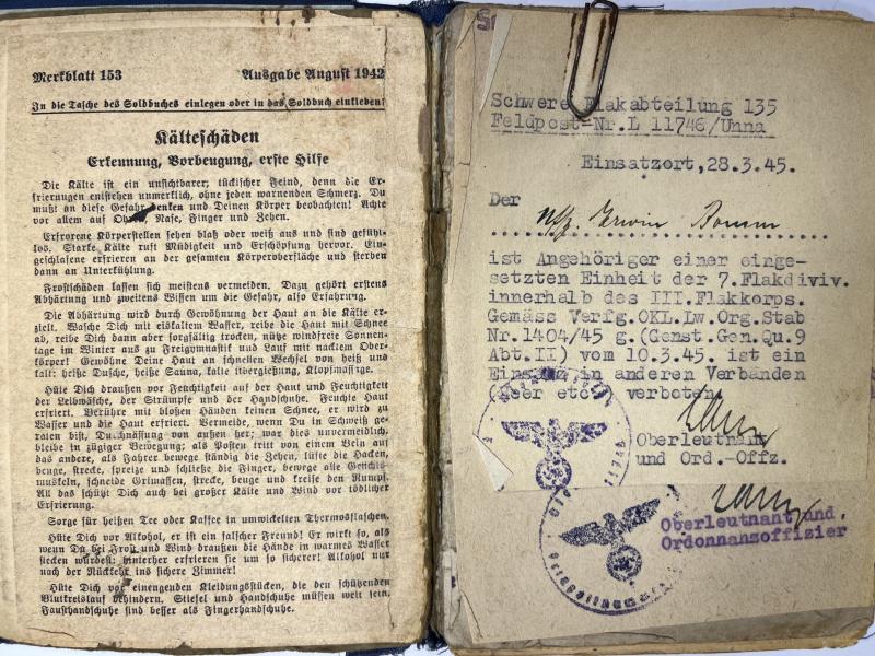 Soldbuch of "Unteroffizier" Erwin Bomm who served within many different Flak related units.