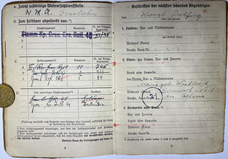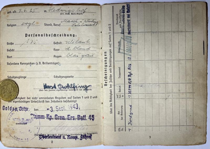 Soldbuch and citation of "Gefreiter" Horst  Rohlfing who served within Gren.Rgt.506 of the 291.Inf.Div.