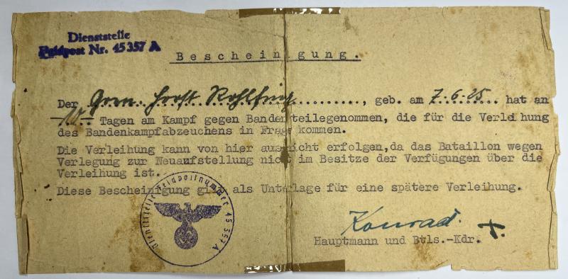 3) "Bescheinigung" (proof) for 10 days of  "Bandenkampf".