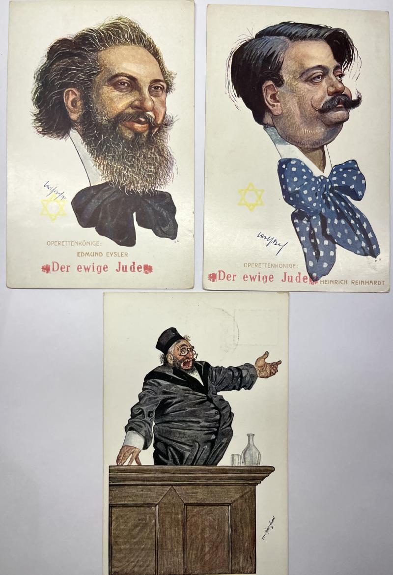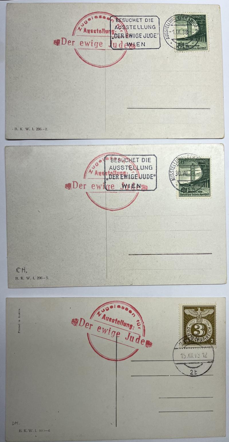 Not often seen anti-jew postcards which were obtained at the "Der ewige Jude" exhibition in Vienna in 1938 and 1943!