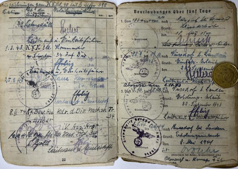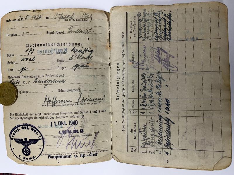 Soldbuch/RC I.D. - WH (Heer) - 34.Inf.Div. - Pfaffmann