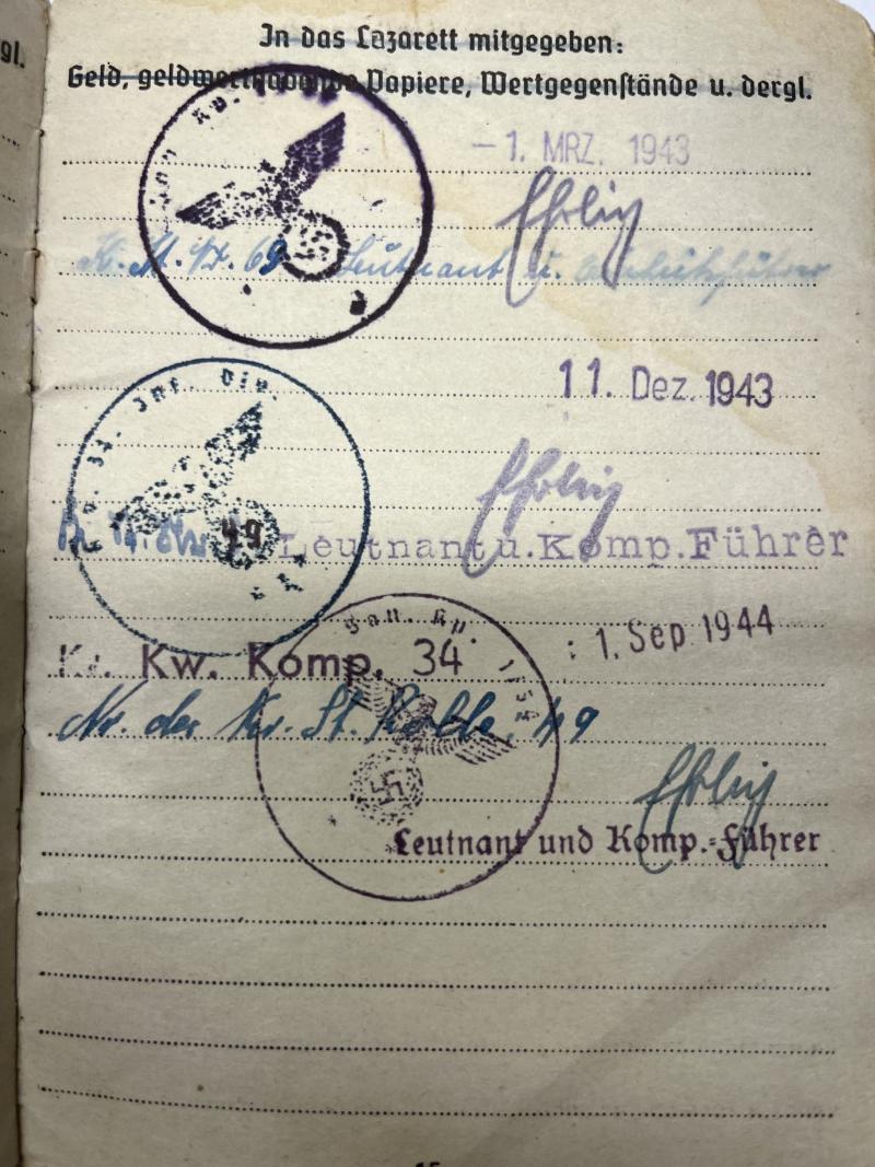 1) Soldbuch of Pfaffmann who must have experienced tremendous suffer as he transported countless wounded.