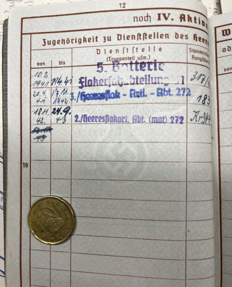 Wehrpass - WH (Heer) - Heeres Flak Abt.272 (mot)- Heiming