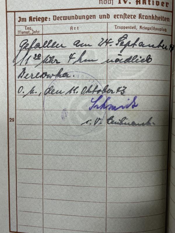 Heiming was KIA on 24-9-1943 (same day as "Heeresflak Abzeichen" award) at Rshischtschewo at 11.30.