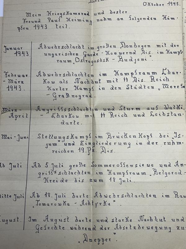 3) Comes with few "Feldpost" letters and ann interesting list which was made by a comrade of Paul which shows the most important battles Heiming participated in.