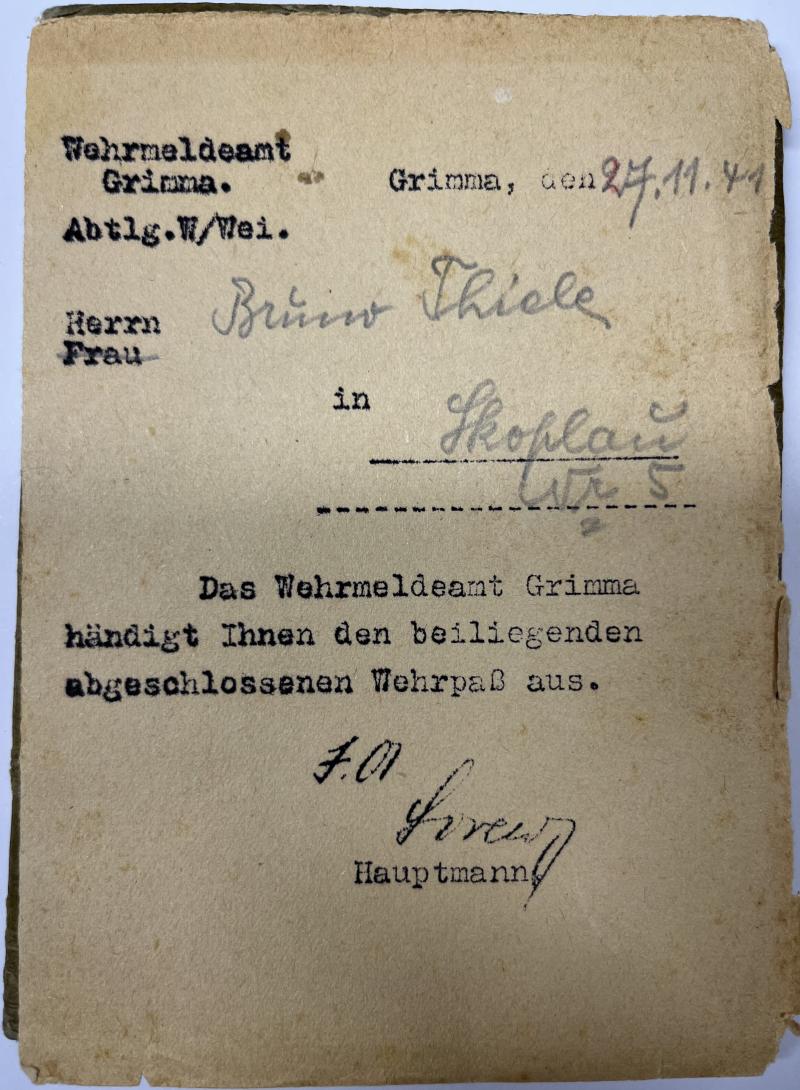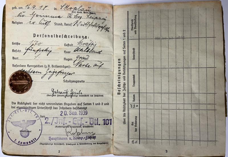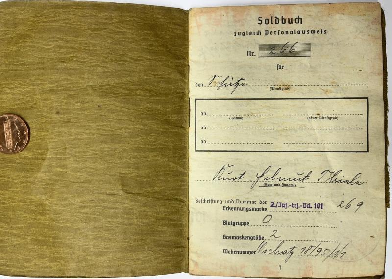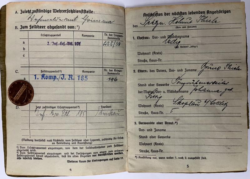 Soldbuch of "Schütze" Helmuth Thiele who served within Inf.Rgt.185 of the 87.Inf.Div.