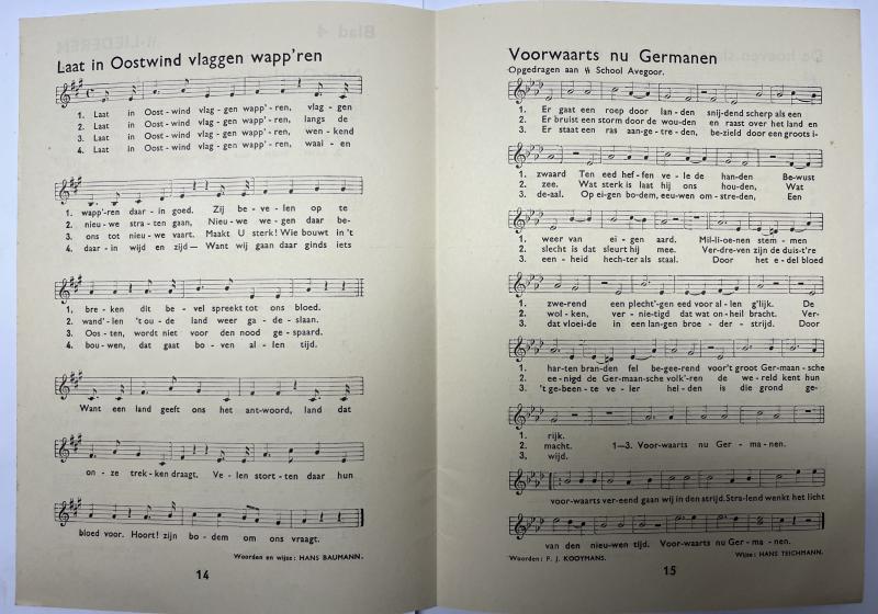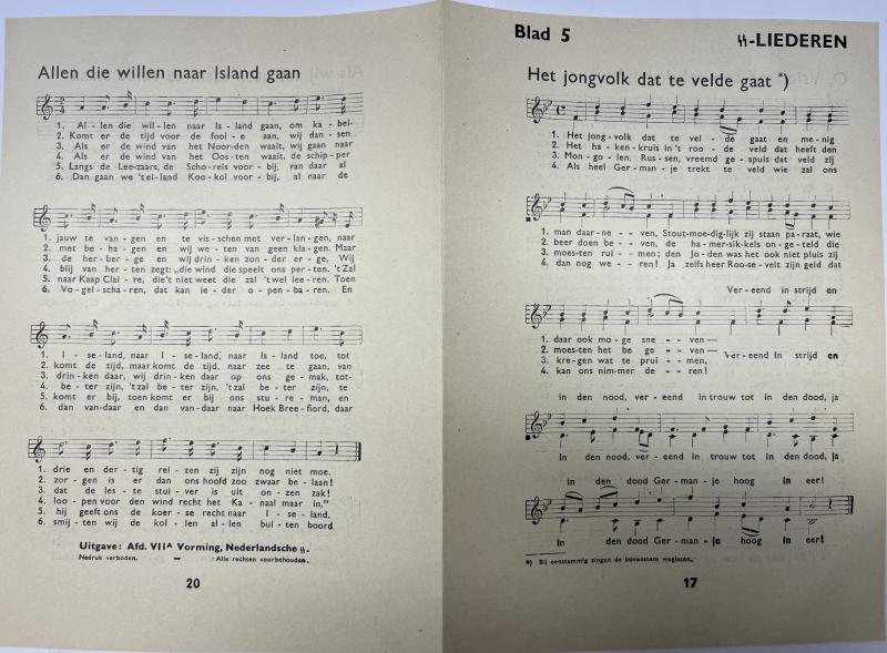 Rarely seen "SS-Liederen" (Dutch SS songs) sheet 4 + 5 + toelichting (explanation)