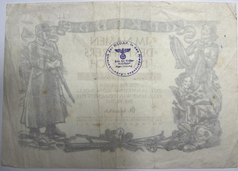 "Sammlung von Woll,Pelz und Wintersachen für die Front" citation of Mr.J.Karel who must have been a Dutchmen as this citation has been printed in the Netherlands (K 1030) and was handed out on behalf of "Arbeitsbereich der NSDAP in der Niederlanden-Kreis Drenthe"!