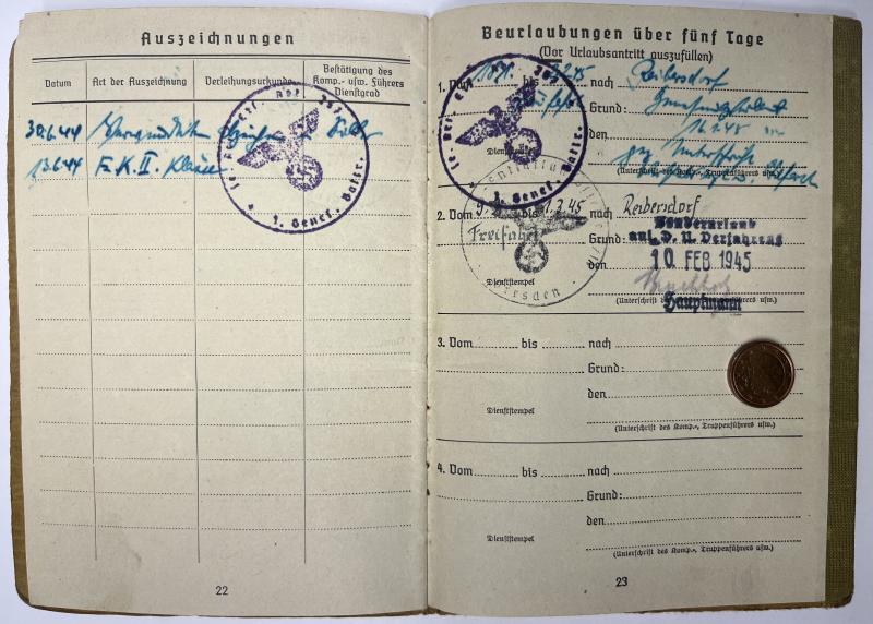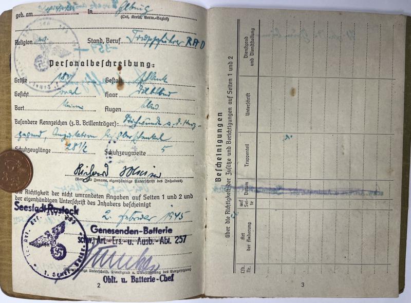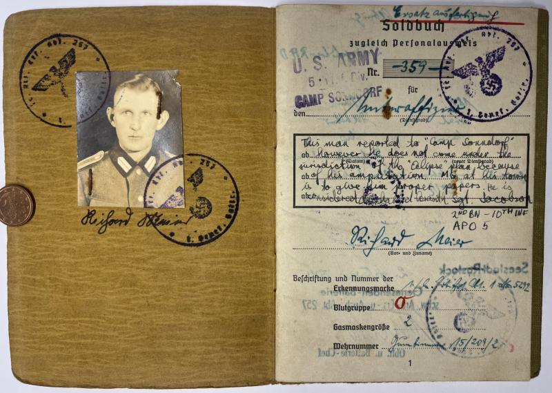 1) "Ersatzausfertigung" Soldbuch of Meier (shown in his RAD uniform)