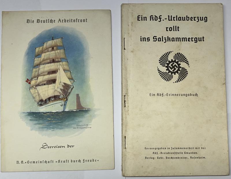 Attractive "KDF" lot with 6 different menu cards (Wilhelm Gustloff 2 x) and a KDF Salzkammergut holiday guide.