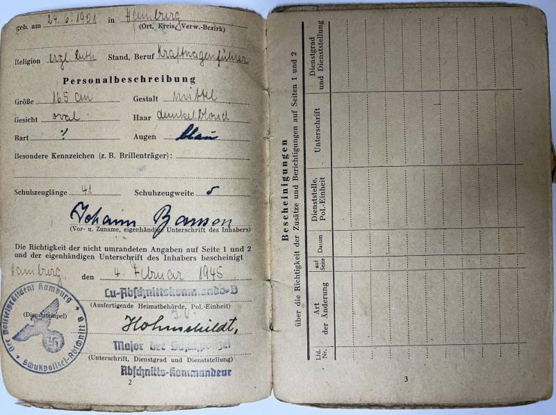 "Polizei" Solbuch/Wehrpass - Hamburg - Bansen