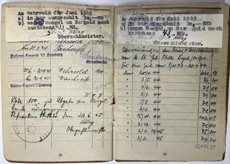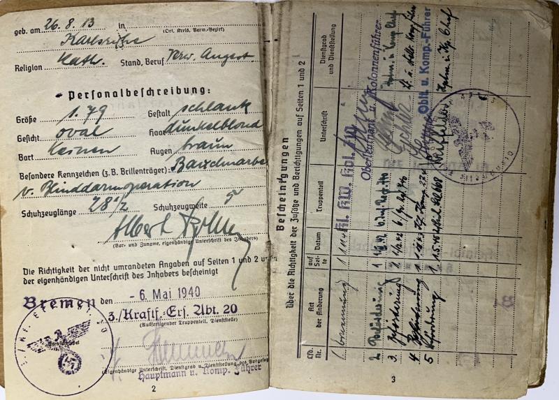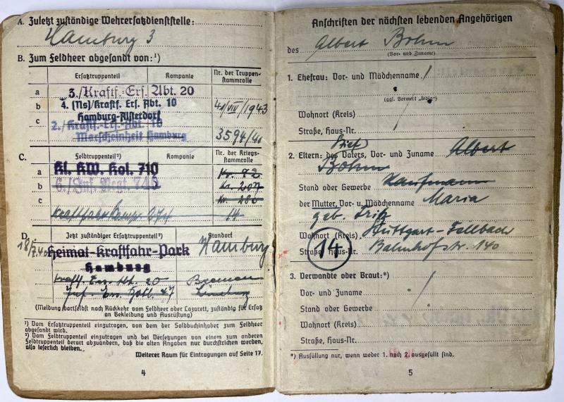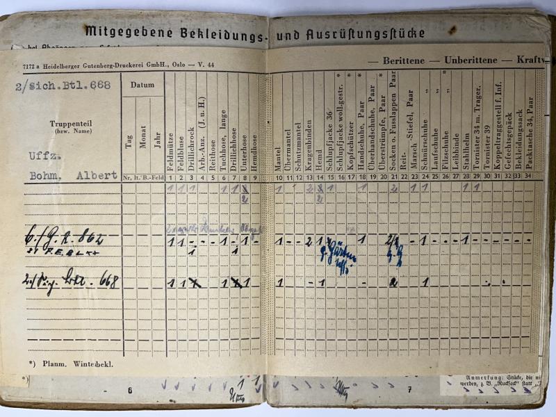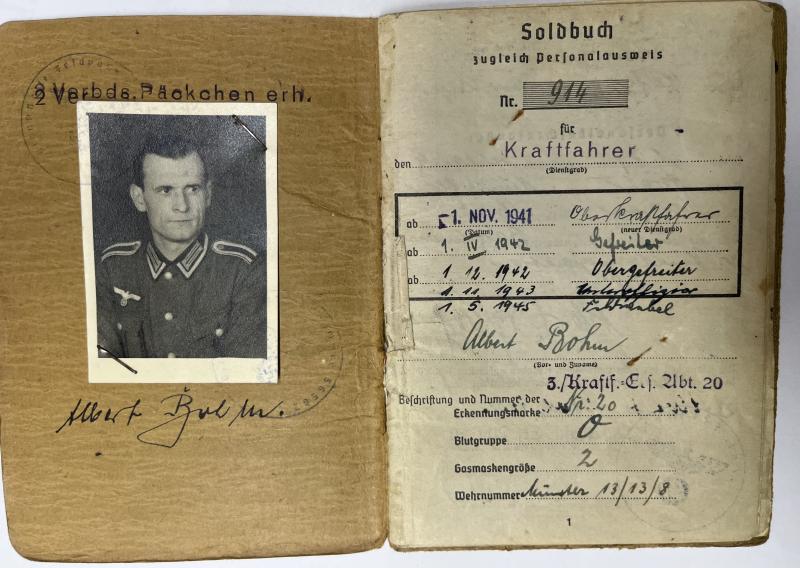Soldbuch of "Feldwebel" Albert Bohm who served finally within "Armee Norwegen" (Norway)