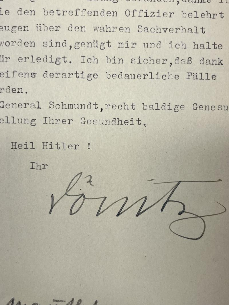 Interesting letter from "Der Oberbefehlshaber der Kriegsmarine" Karl Dönitz (RK 21-4-1940,EL 6-4-1943, "Goldenes Parteiabzeichen"!!