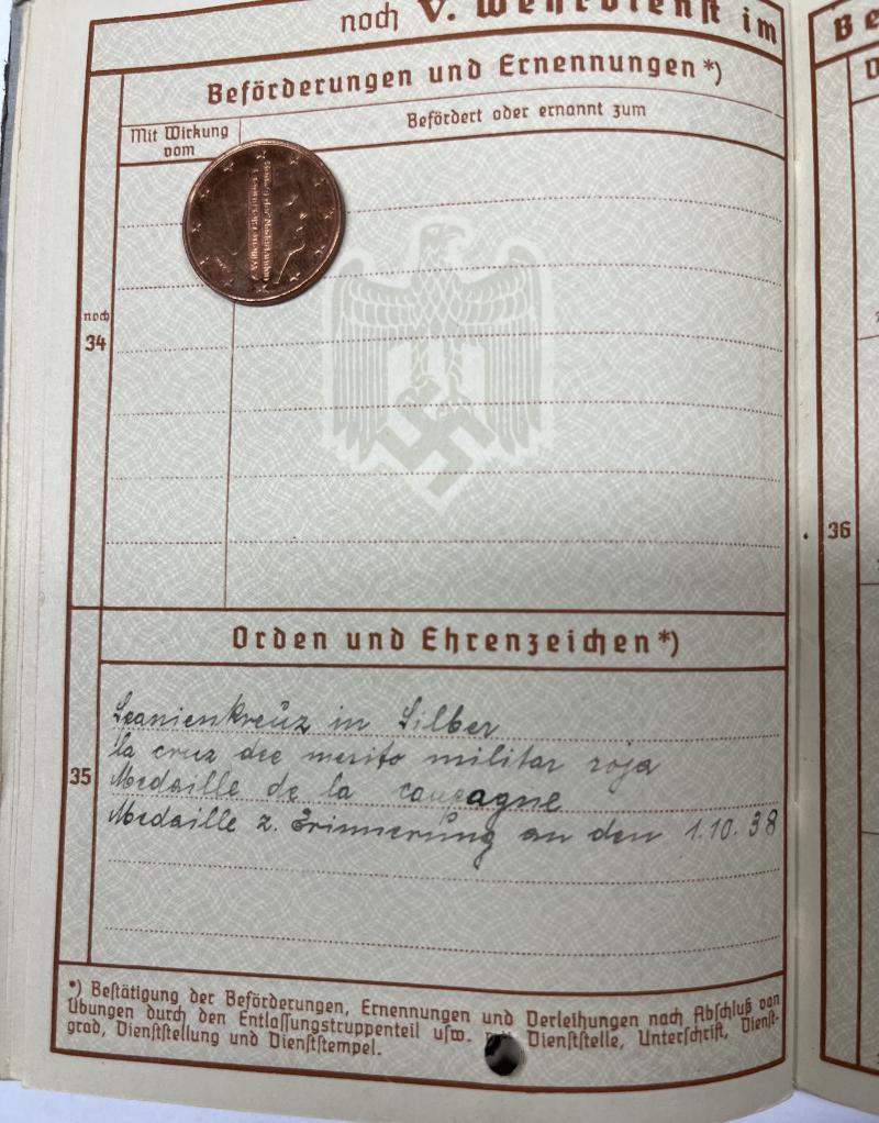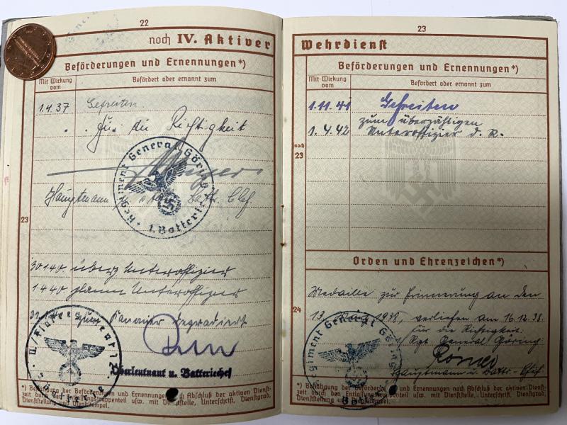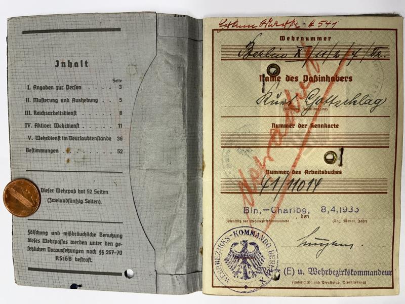 Wehrpass of "Unteroffizier" Kürt Gottschlag who started within Rgt.General Göring in 1936.