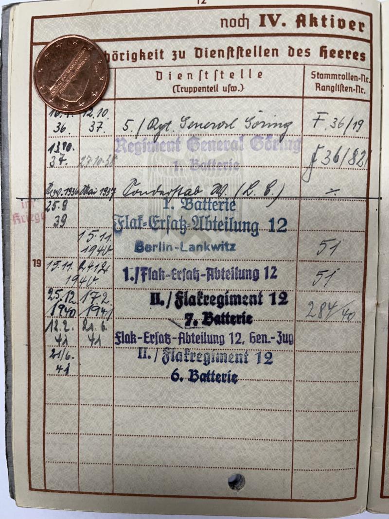 Wehrpass - Luftwaffe - Rgt."General Göring" - Flak Rgt.12 - Gottschlag