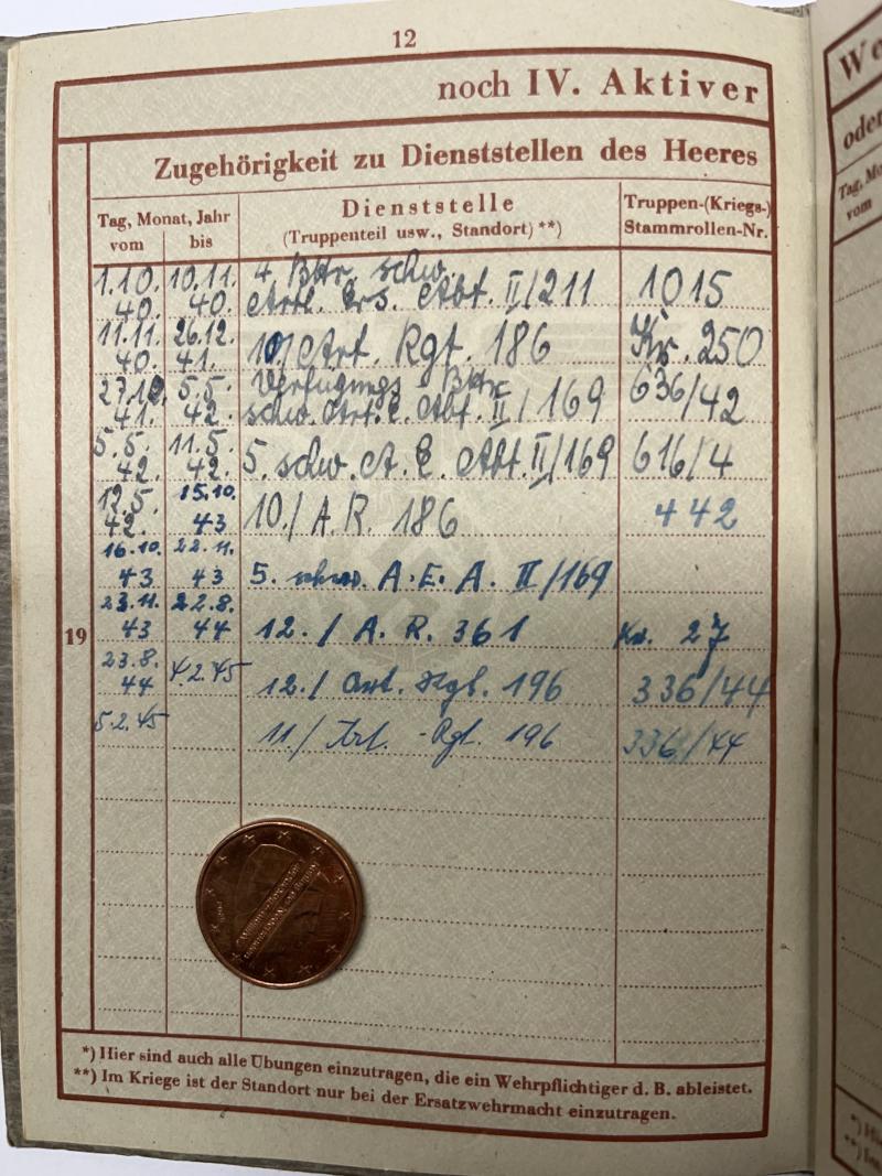 The last unit Schürmeyer served in was: Art.Rgt.196 of the 96.Inf.Div. and acted in France, Russia (Leningrad!), Norway, the North-Ukraine and/or Hungary.
