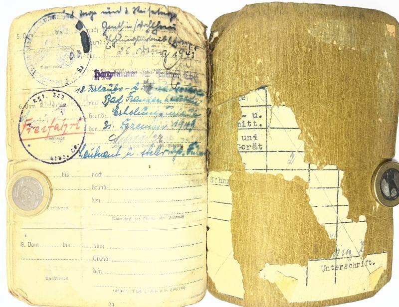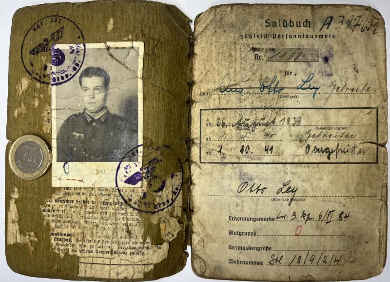 Soldbuch of "Obergefreiter" Otto Ley who served first within a Luftwaffe Bau (pioneer) unit and was transferred into the "Heer" (Army).