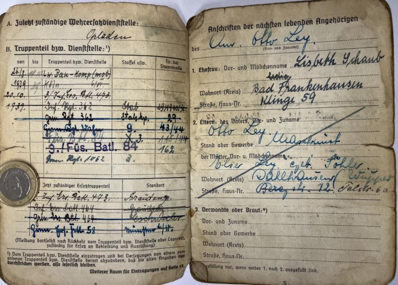 Soldbuch - Luftwaffe/WH (Heer) - 84.Inf.Div. - Ley