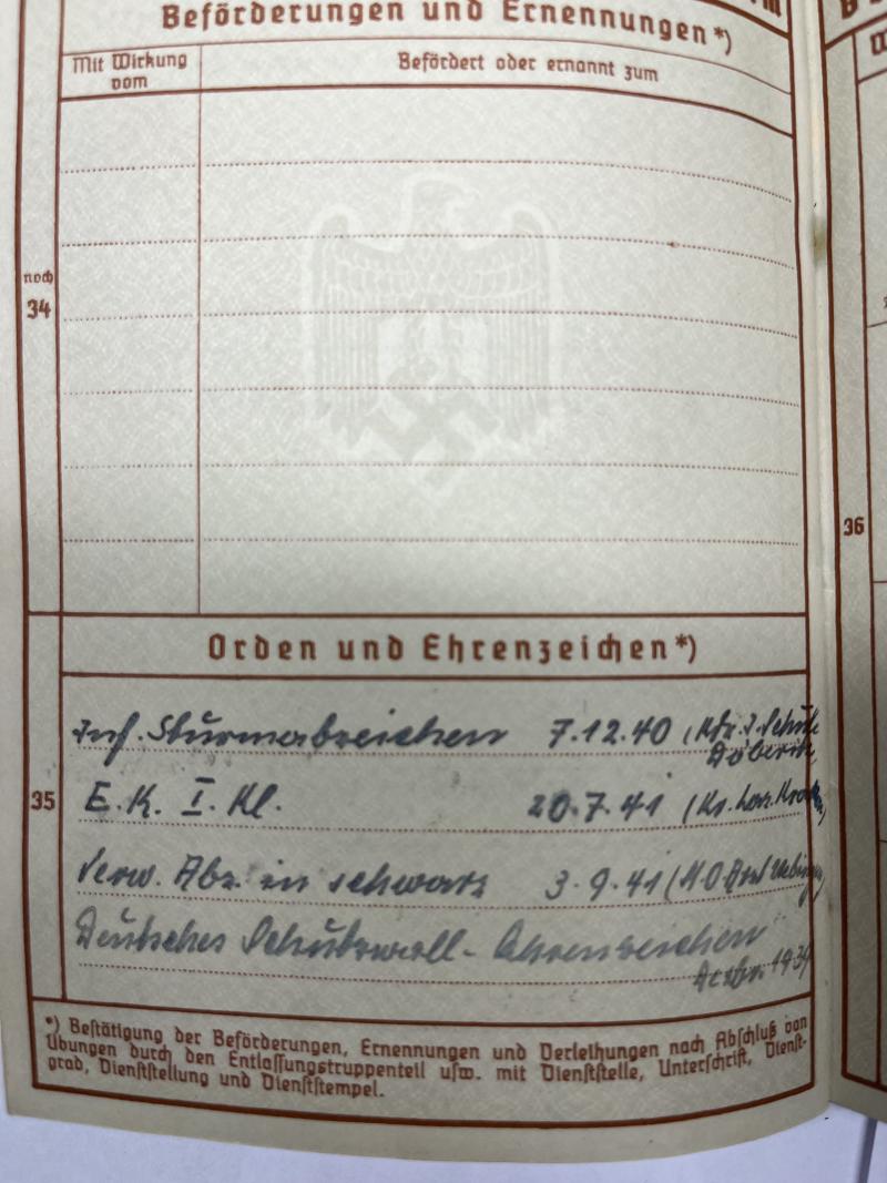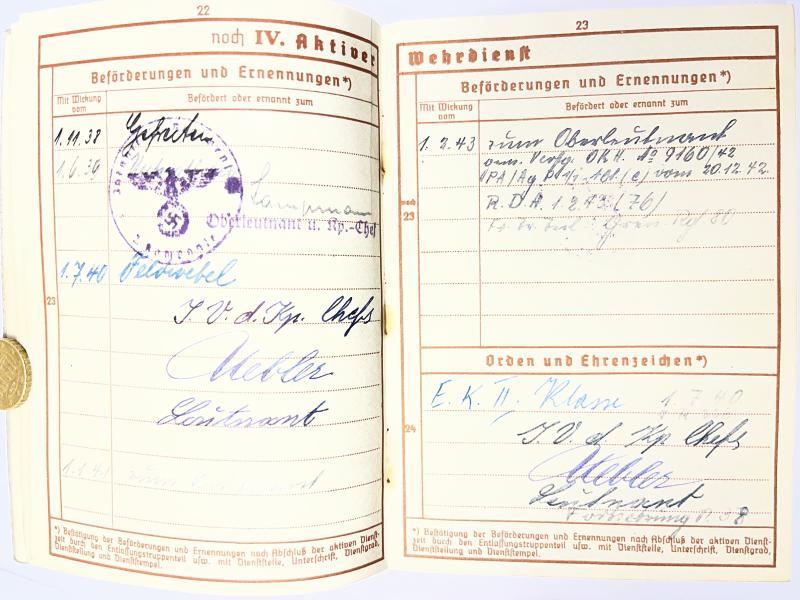 Wehrpass of "Oberleutnant" Herbert Hermann who served within severla different units before ending up within (Pz.Jg.)Gren.Rgt.848 of the 282.Inf.Div.