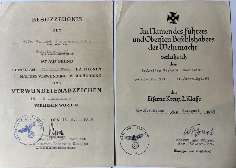 Citation grouping of "Gefreiten" Gerhard Bennewitz who served within Stab Gren.Rgt.87 of the 36.Inf.Div.