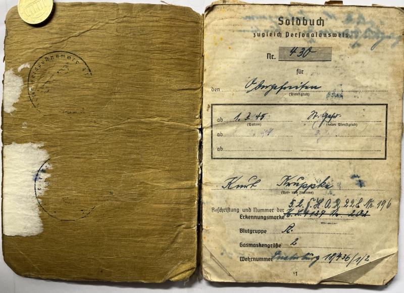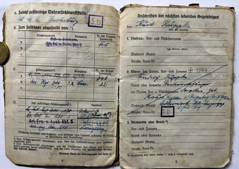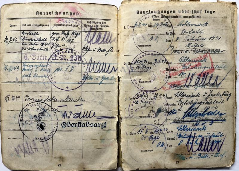 Soldbuch and citation of "Obergefreiten" Erich Kruppke who served within Art.Rgt.235 of the 198.Inf.Div.
