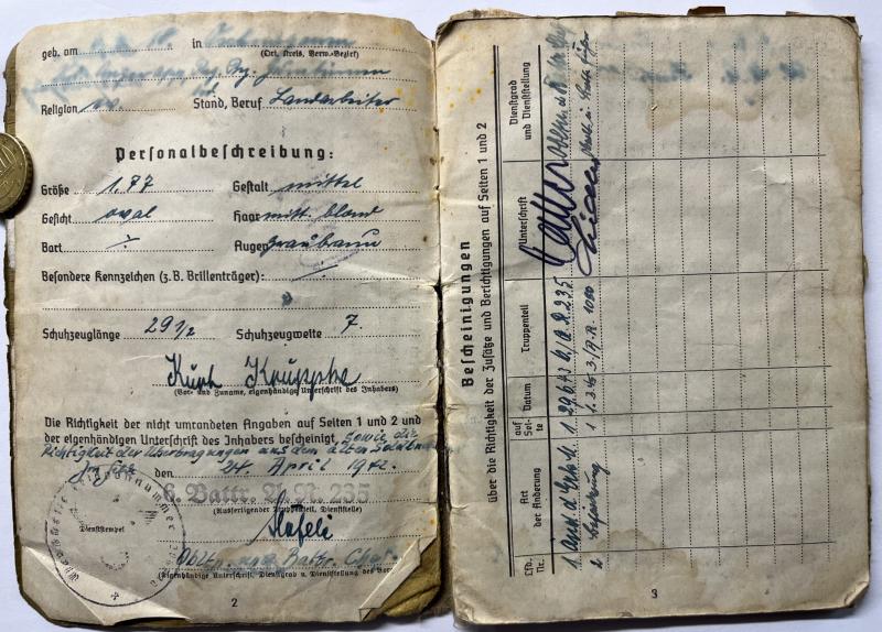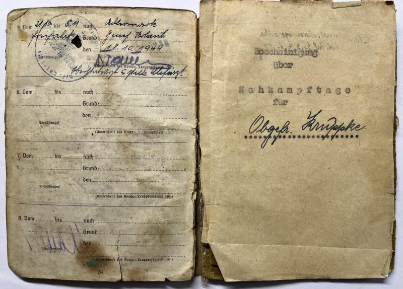 Soldbuch/citation - WH (Heer) - 198.Inf.Div./180.Inf.Div. - Kruppke