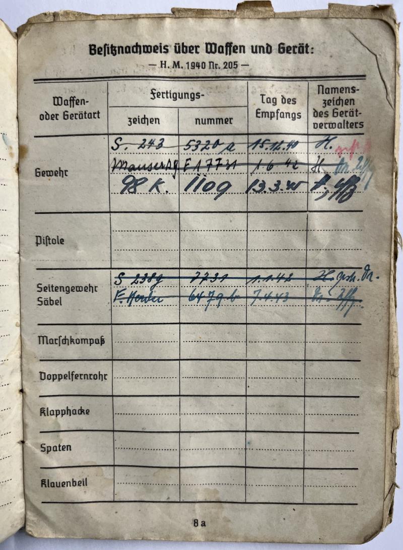 The Soldbuch shows 1 "Nahkampftag" on 26-1-1944 in Russia.