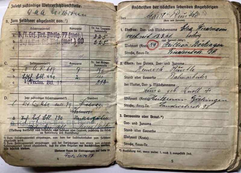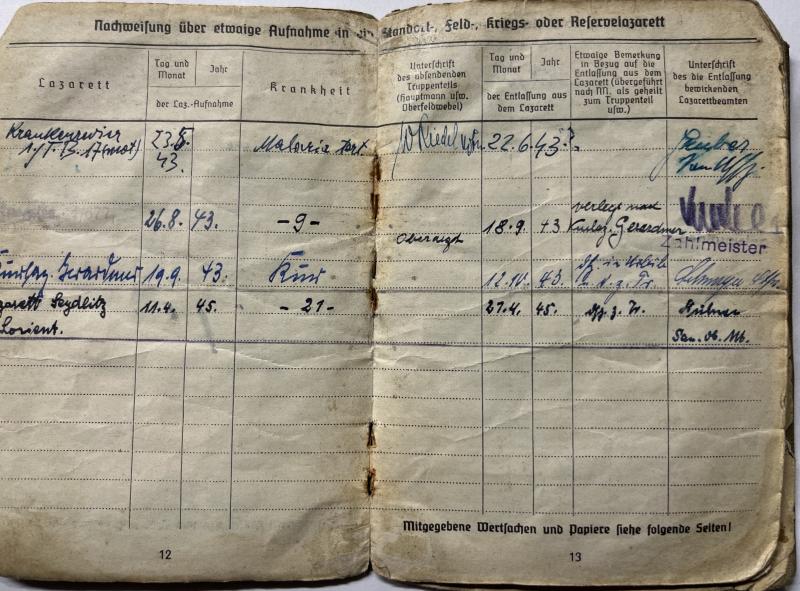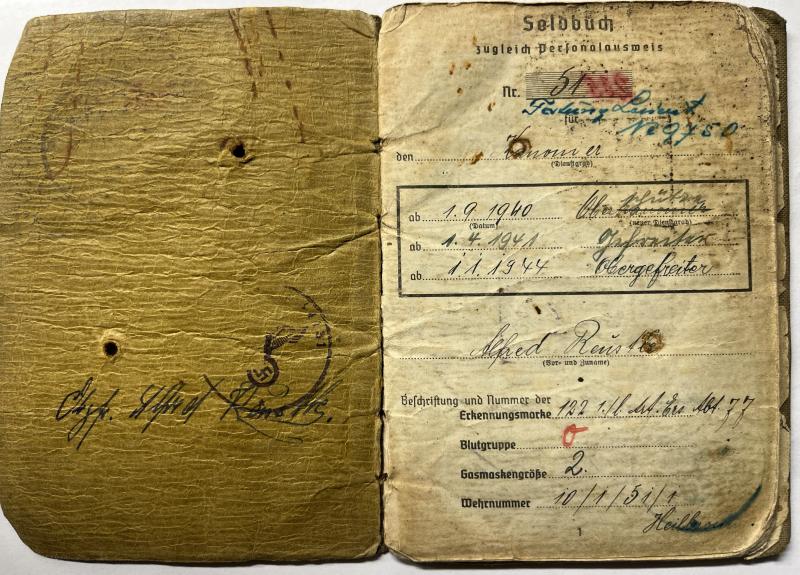 Soldbuch of "Obergefreiter" Alfred Reustle who served finally within "Platzkommandantur Lorient".