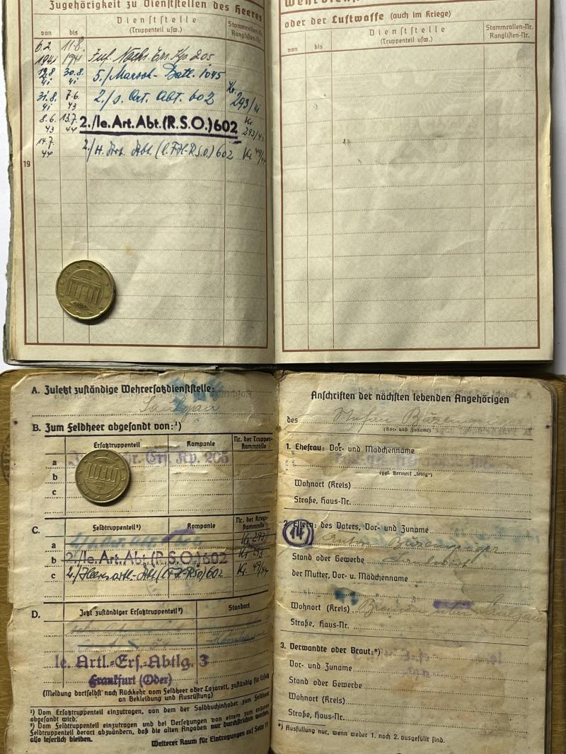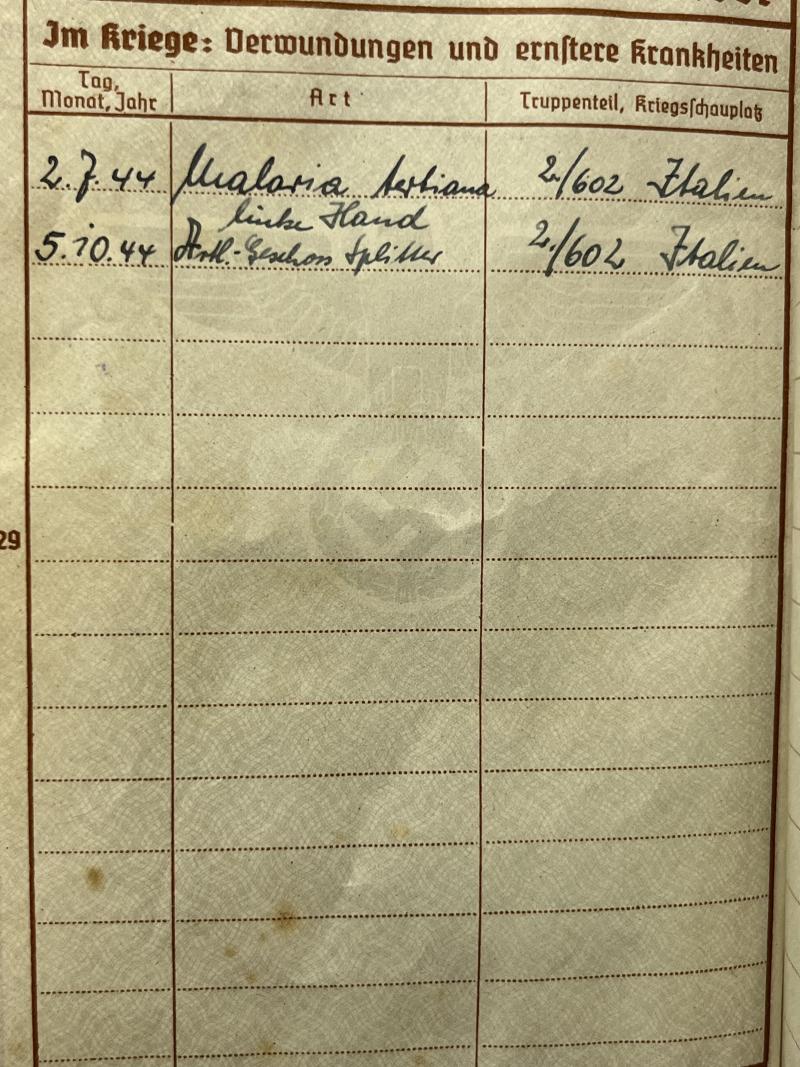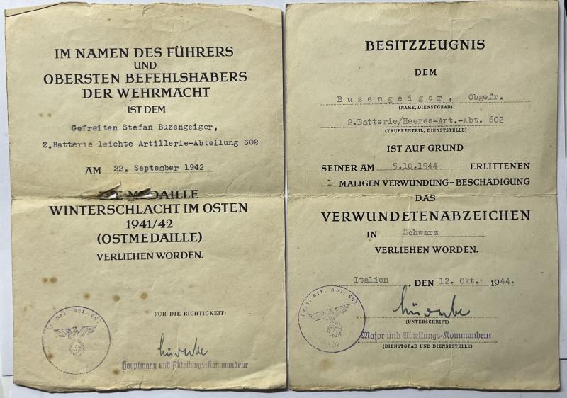 Wehrpass/Soldbuch/citations - (WH-Heer) - Heeres Art.Abt.(l.F.H.-RSO)602 - Italy - Buzengeiger
