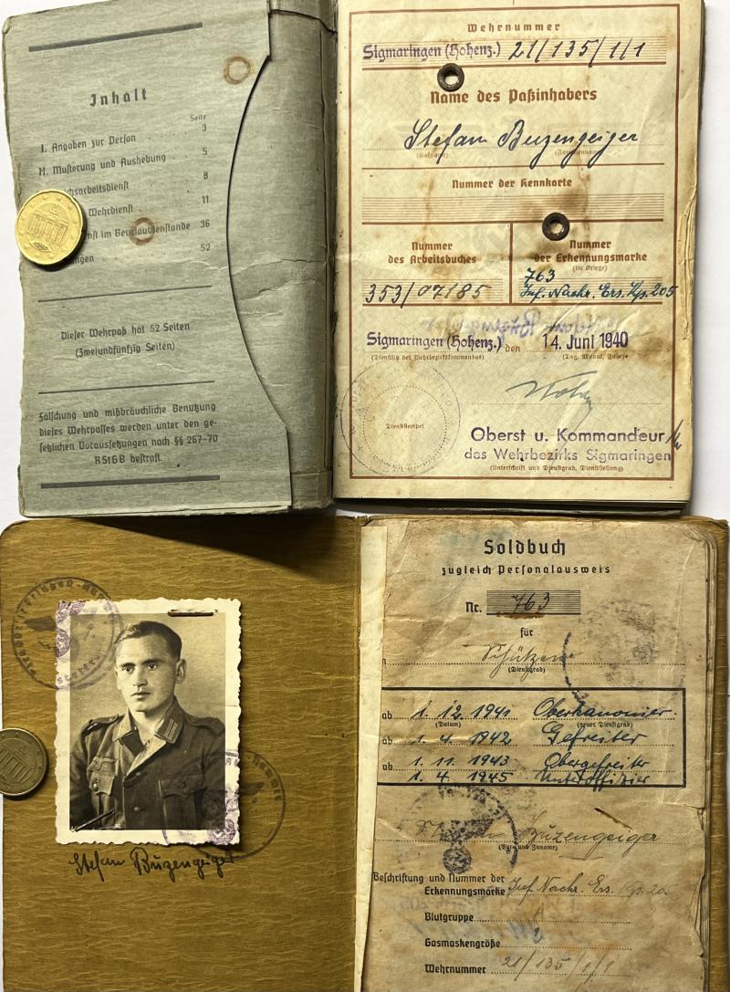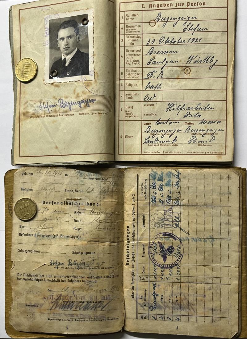 Wehrpass,Soldbuch and citations of "Unteroffizier" Stefan Buzengeiger who served within Heeres Art.Abt.(l.F.H.-RSO) 602.