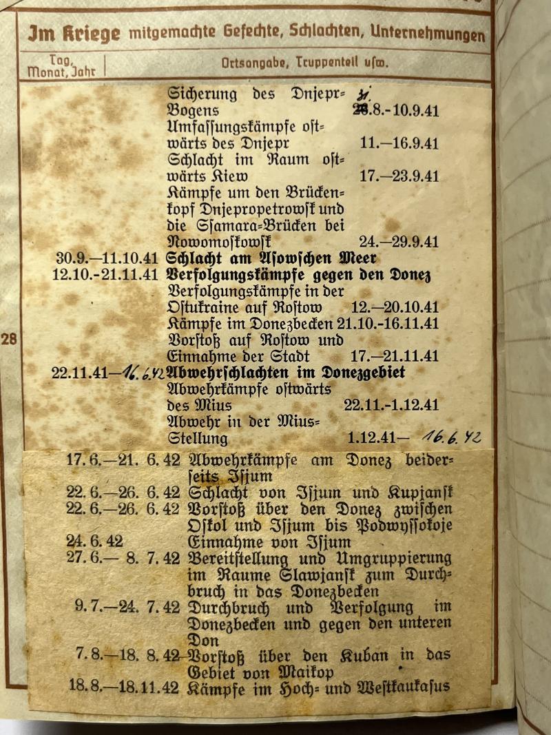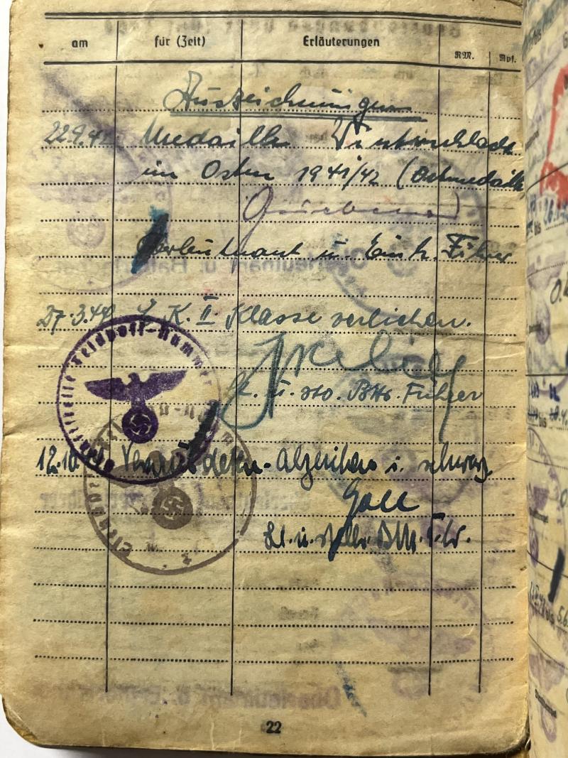 3) "Ostmedaille" citation which has been signed by the unit commander.