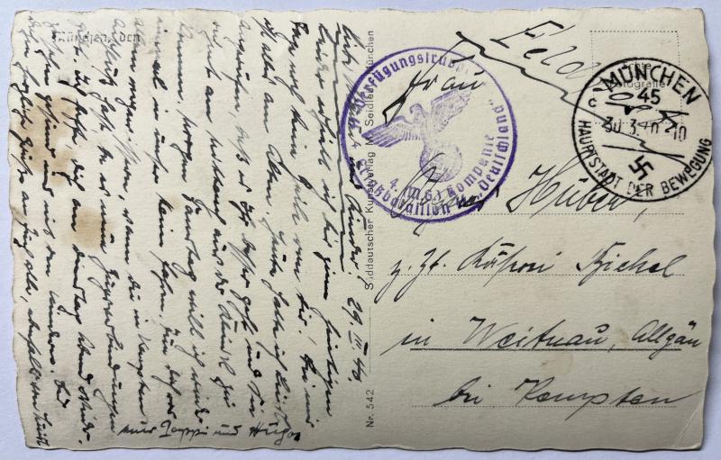 Nice postcard which has been sent by an "SS-Mann" who served within "Ersatzbataillon ss "Deutschland" of the "SS-Verfügungstruppe" at the "SS-Standarte -Deutschland" barracks in München.