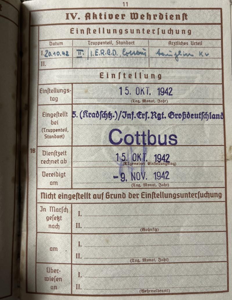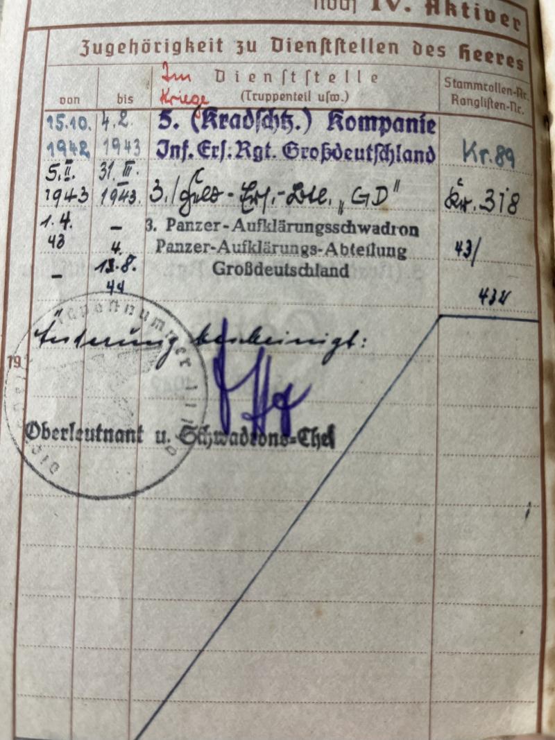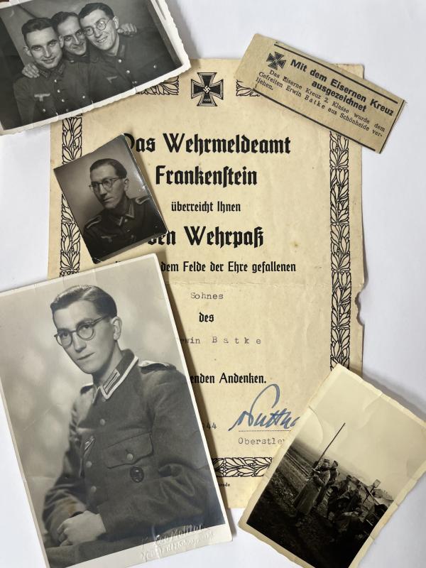 Wehrpass of "Gefreiten" Erwin Batke who served within Pz.Aufklärungsschwadron ,Pz.Aufklärungs-Abt."Grossdeutschland" of the Pz.Gren.Div. "Grossdeutschland".